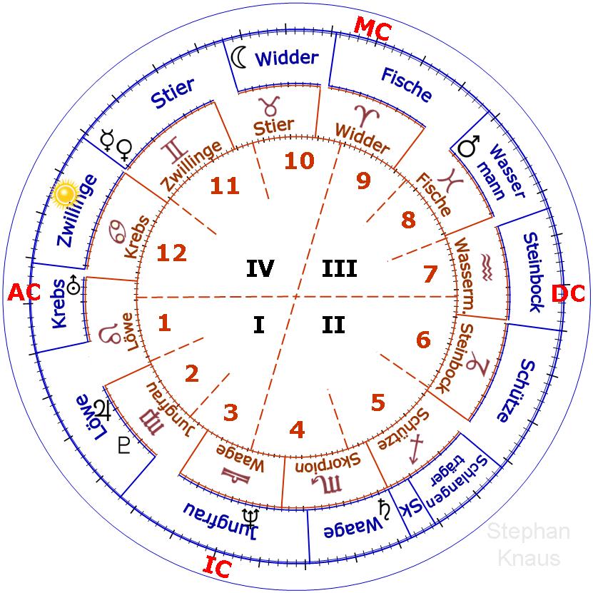 • Sonne im Sternbild Zwillinge, heißt also Tierkreiszeichen Krebs das soll jedoch keine Aufforderung sein. Man erkennt, daß die aktuellen Positionen auf den Hintergrund von vor 2 000 Jahren projeziert werden. |